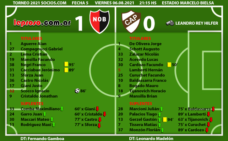 . Es el 5º 1-0 de Fernando Gamboa dirigiendo a Newell's. El primero fue en su debut con técnico leproso