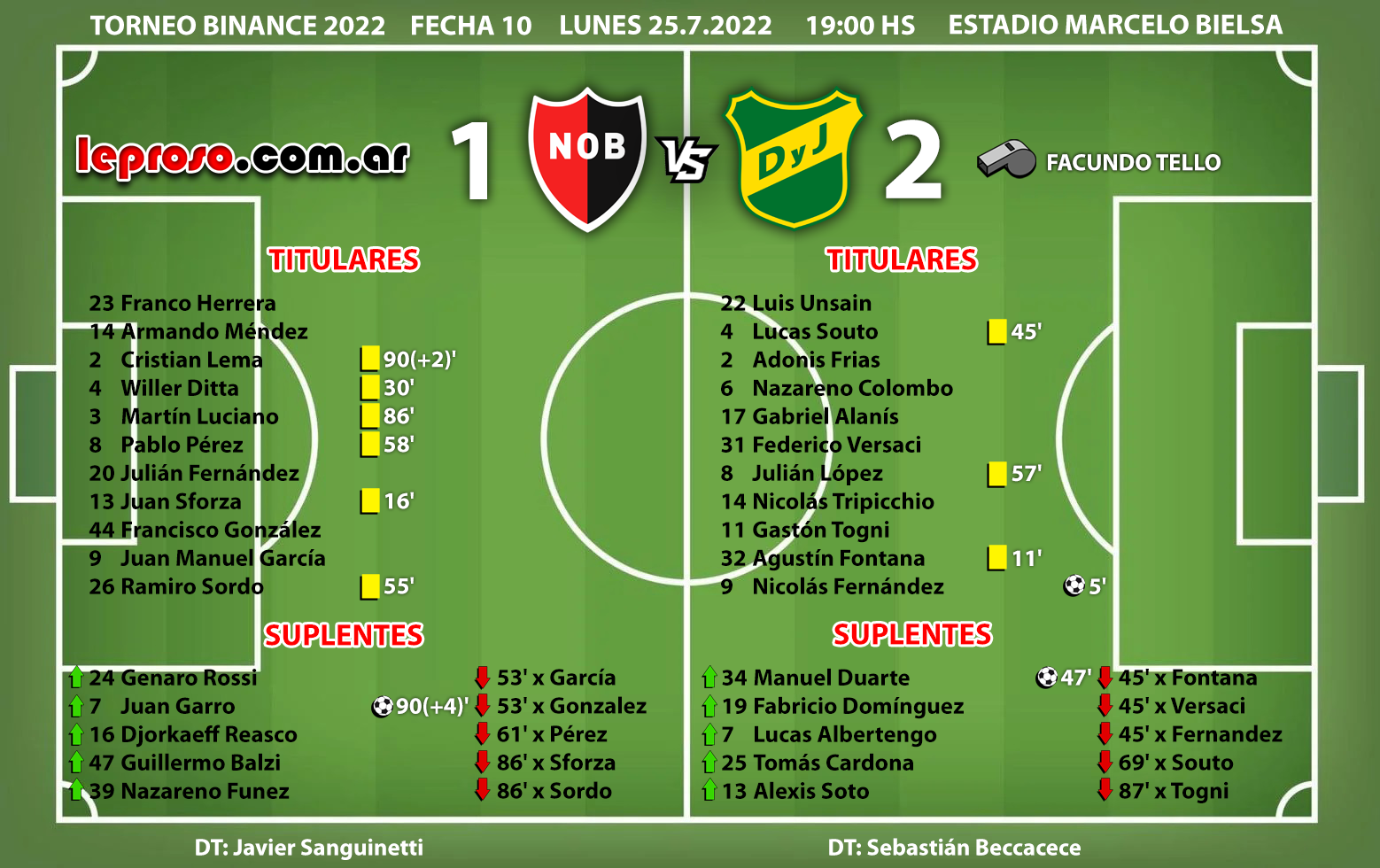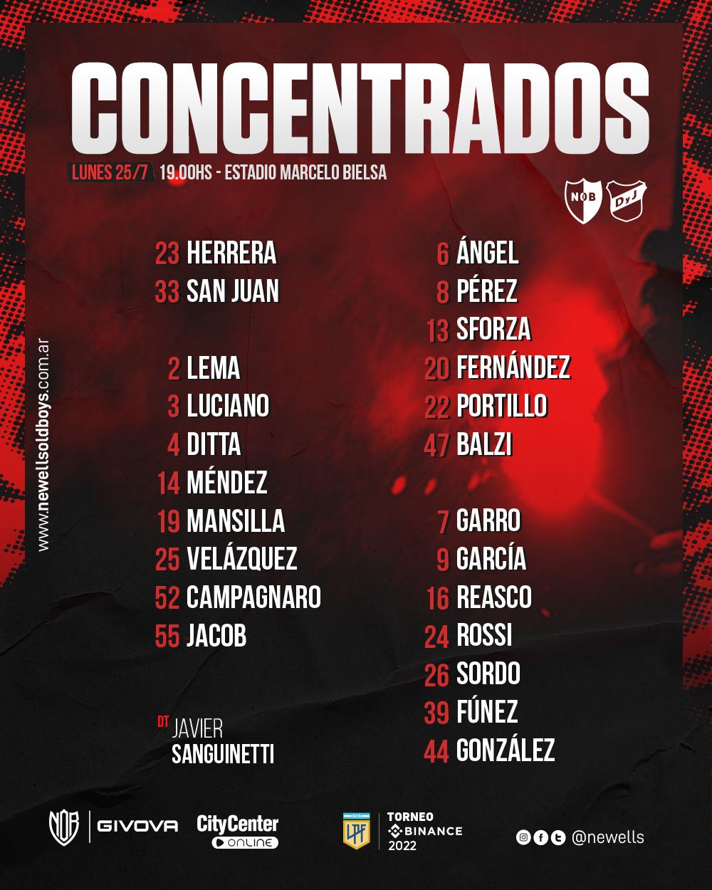 JAVIER SANGUINETTI : 25 partidos dirigiendo a la lepra. Suma 12 victorias , 6 empates y 7 derrotas. En AFA 39 puntos sobre 72 (54,16 % de efectividad). Después de un invicto de 8 fechas, su equipo pierde por 2º vez consecutiva, esta vez ante su gente en el Coloso. En la tabla comparativa de técnicos históricos en sus primeros 25 partidos dirigiendo a Newell (41 DT en total), Archu se ubica con esta 2º derrota en el 7º lugar detrás de BIELSA, MONTES, DELLACHA, MARTINO, ROTMAN y JUDICA.