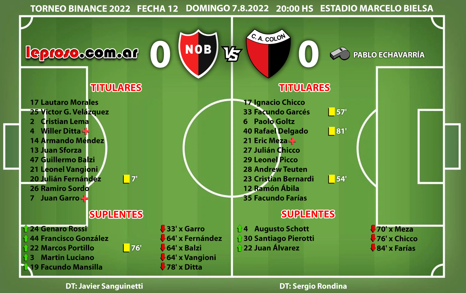 LAUTARO MORALES: Proveniente de Lanús, debutó con la dorsal 17 inédita para el arco leproso y más curioso aún el arquero sabalero también lucía la misma dorsal. Debutante Nº 11 de la era Sanguinetti. El primer arquero desde 1966 que debuta ante COLON DE SANTA FE, año en que el sabalero asciende a 1ª. De los 75 arqueros que pasaron por la 1ª rojinegra desde 1939, Morales ingresó en el grupo de los 27 porteros que debutaron sin goles. |