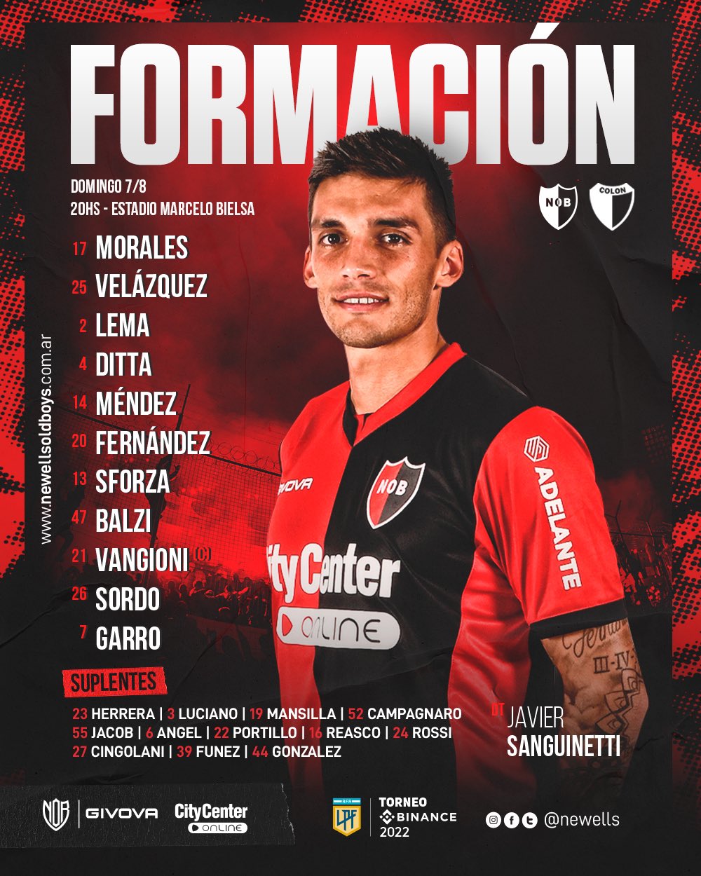 CRISTIAN LEMA: jugó ante el sabalero su partido Nº 90 con la rojinegra. Alcanzando en el historial a Leonardo Ponzio. |