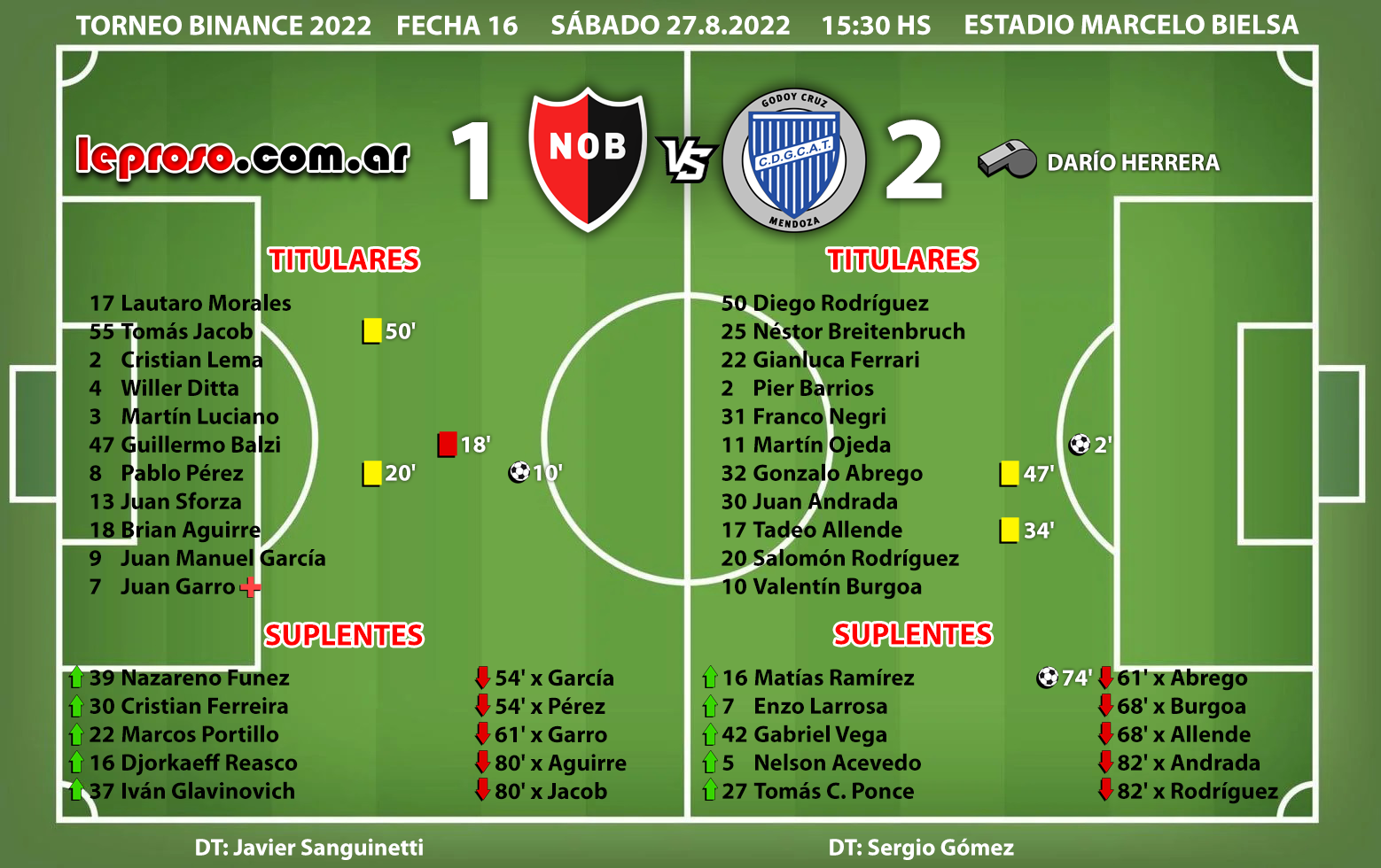SERGIO GOMEZ : primera vez que enfrenta a la lepra como DT rival. Buen comienzo. |