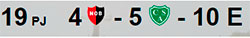 Con el Verde es la primera derrota en condición de Local. Se habían enfrentado 7 veces con 5 empates y 2 victorias rojinegras. |