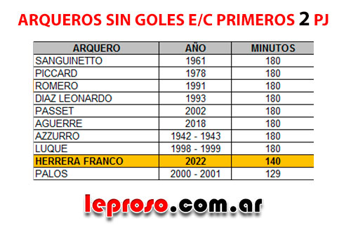 FRANCO HERRERA: ya había debuta oficialmente en primera el 15/04/2022 frente a Patronato con 18 años, 6 meses y 26 días cuando ingresó a los 40' del PT en reemplazo del lesionado Macagno y de esta manera se convertía en el 3º arquero más joven en debutar en la historia rojinegra desde 1931. Esta vez frente a Racing lo hizo por primera vez como TITULAR desde el arranque y mantuvo nuevamente el arco en 0. Si bien no tiene 2 partidos completos, ingresa en la lista de arqueros sin goles en contra en sus primeras 2 presentaciones. Vale aclarar que Palos ingresó a los 6' ST por Cejas cuando el partido ya estaba 1-1 pero no recibió goles durante los 39 minutos que estuvo en cancha. |