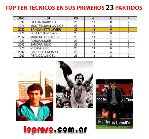 Archu Sanguinetti en el TOP TEN de mejores inicios y se mantiene en el podio detrás de Bielsa y Montes, transcurrido 23 partidos desde su debut.