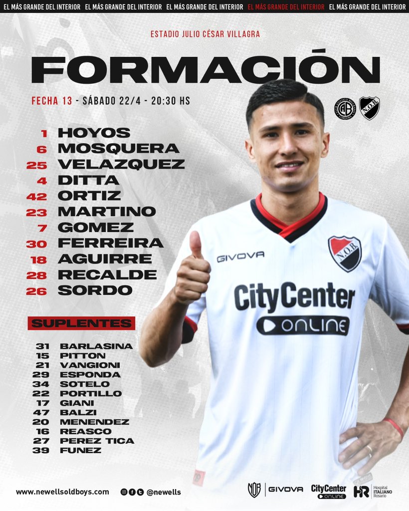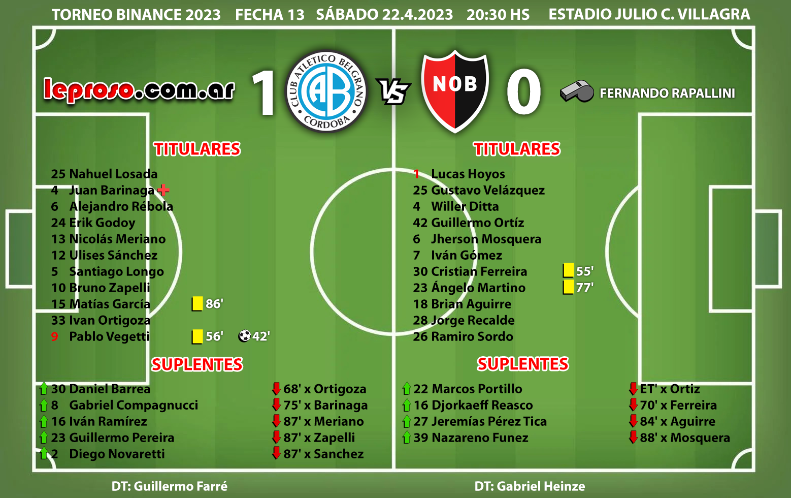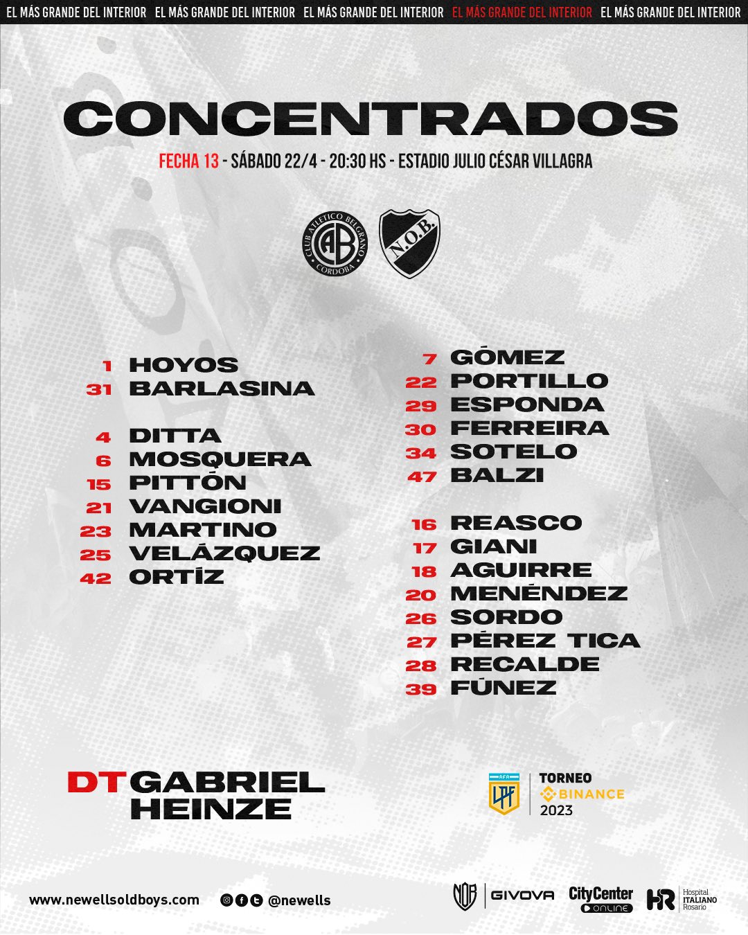 GABRIEL HEINZE : dirigió su 16º partido oficial en Newell's sumando la derrota ante Claypole por Copa Argentina, los 2 triunfos por Copa Sudamericana y las primeras 13 fechas del Torneo Binance 2023, en total 7 victorias, 6 derrotas y 3 empates. En el torneo local Binance 2023, lleva un total de 5 victorias, 5 derrotas y 3 empates con una efectividad del 46,15 %.