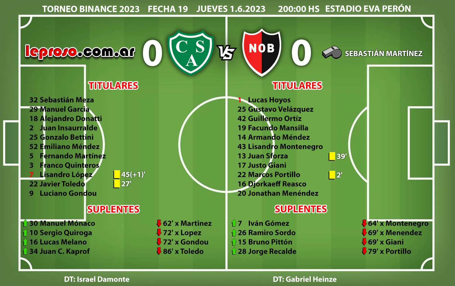ISRAEL DAMONTE : 4º enfrentamiento como DT rival de la lepra. Newell's no pudo ganarle aún. El primer encuentro fue para Arsenal en Sarandí, victoria de Damonte 3-1 (Torneo 2021). El 2º fue empate en Junín, con Sarmiento, 2-2 (Copa liga Profesional 2022), el 3º partido fue victoria de Damonte con el verde en el Coloso y ahora un empate en 0. |