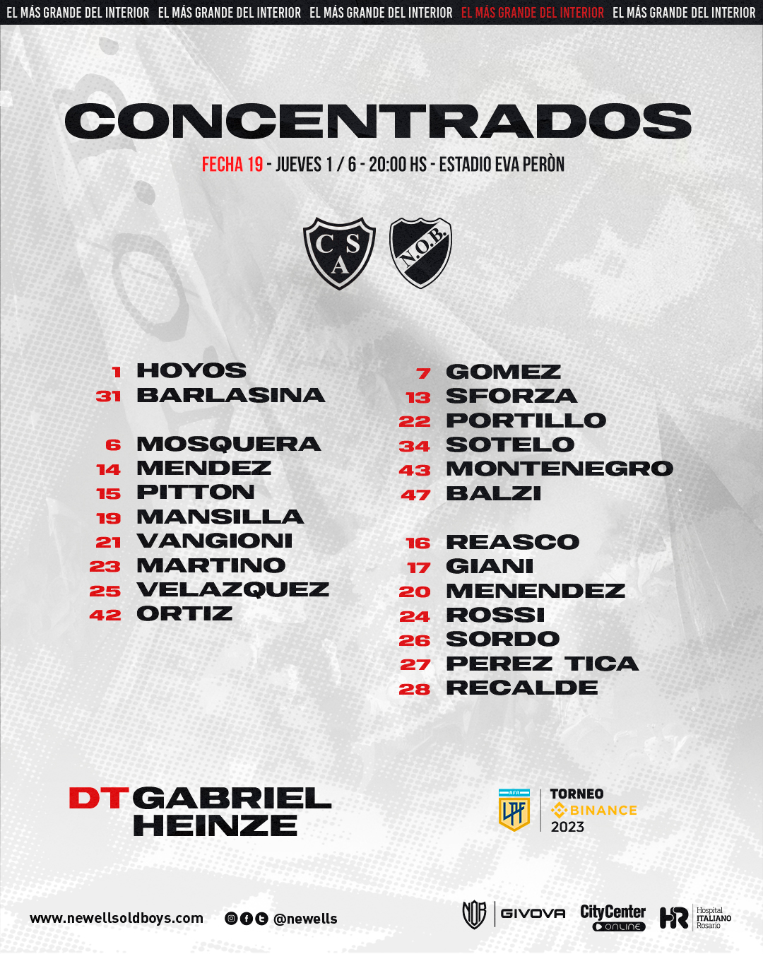 GABRIEL HEINZE : dirigió su 24º partido oficial en Newell's sumando la derrota ante Claypole por Copa Argentina, los 4 triunfos por Copa Sudamericana y las primeras 19 fechas del Torneo Binance 2023, en total 11 victorias, 7 derrotas y 6 empates. En el torneo local Binance 2023, lleva un total de 7 victorias, 6 derrotas y 6 empates con una efectividad del 47,37 %. |