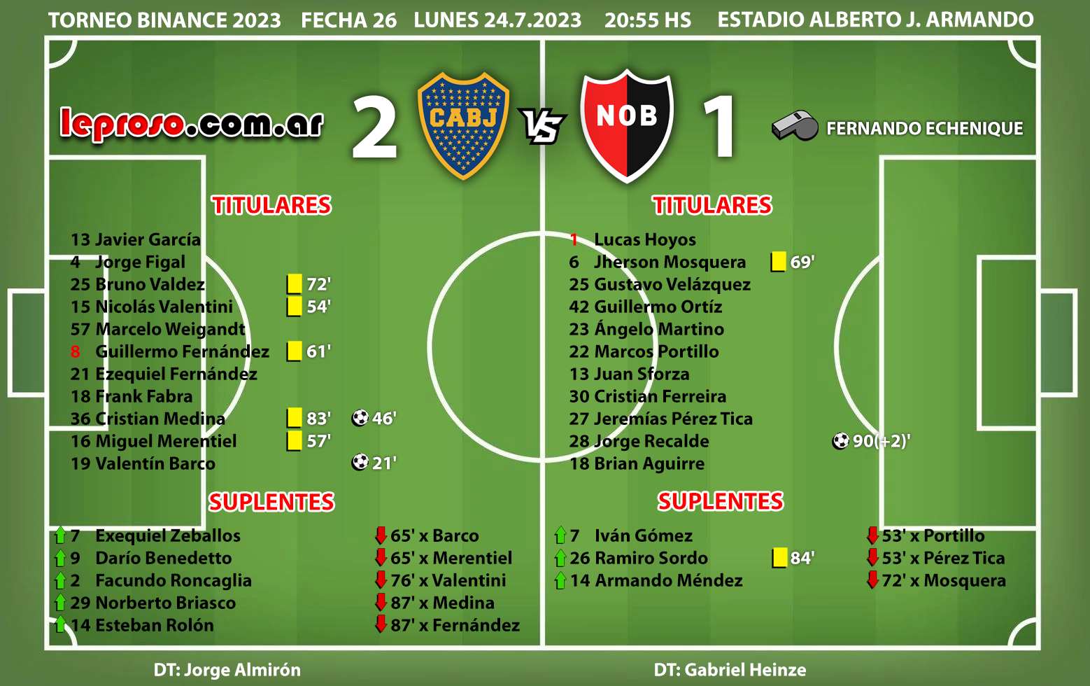 LUCAS HOYOS : una noche para el olvido en la Bombonera con dos errores tácticos que dejaron a la lepra con las manos vacías en la mítica bombonera. Si bien el gol parece en contra de Hoyos, consultado al árbitro, éste se lo dió al jugador de Boca Valentín Barco. Ampliar |