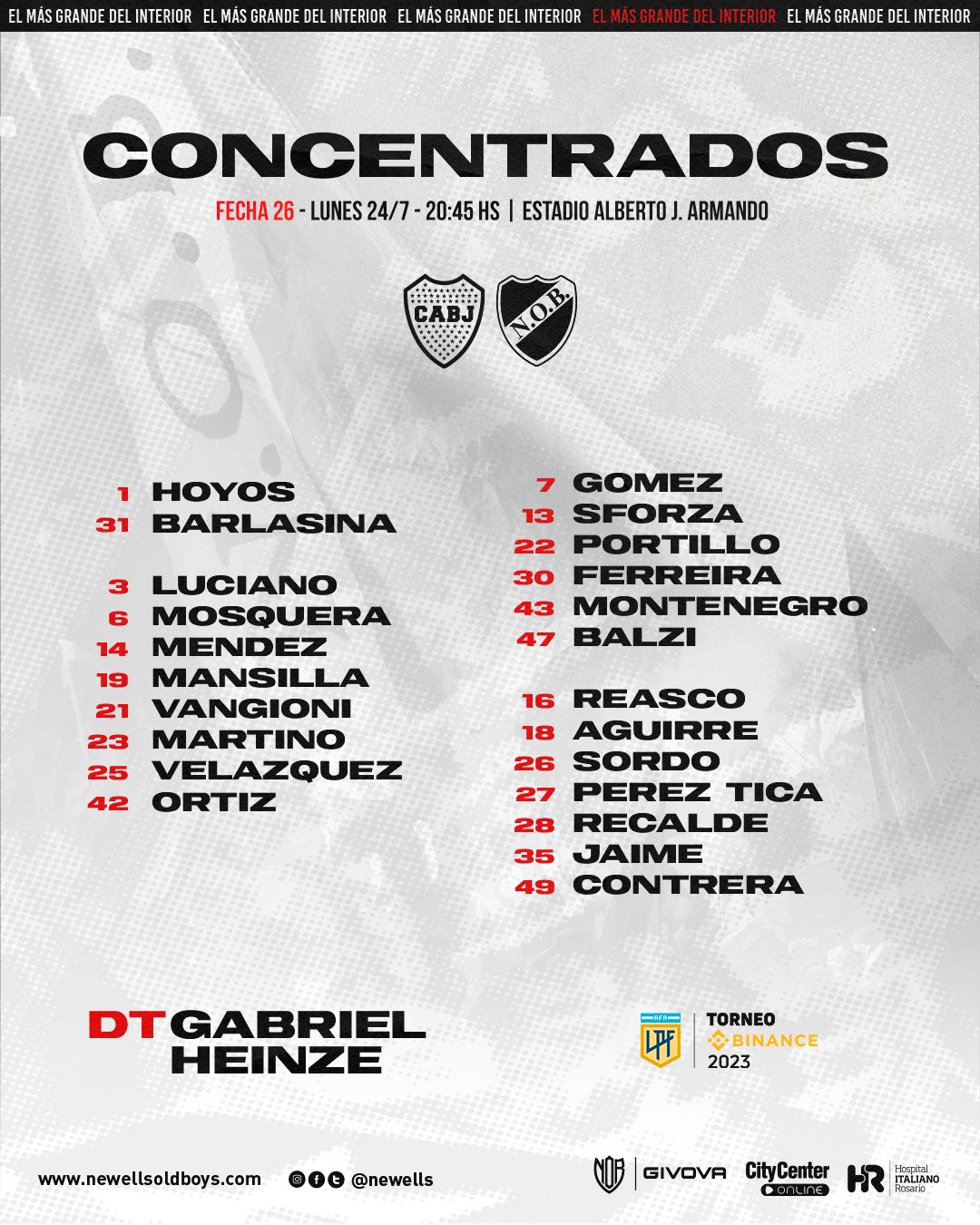 GABRIEL HEINZE : dirigió su partido oficial Nº 33 en Newell's sumando la derrota ante Claypole por Copa Argentina, los 6 partidos de Copa Sudamericana y las 26 fechas del Torneo Binance 2023, en total 13 victorias, 9 derrotas y 11 empates. En el torneo local Binance 2023, lleva un total de 8 victorias, 8 derrotas y 10 empates con una efectividad del 43,59 %. |