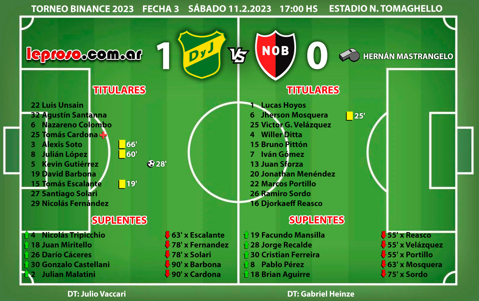 GABRIEL HEINZE : dirigió su 3 º partido oficial obteniendo 4 puntos de 9, lamentando su primer derrota. En su 3 º partido hizo debutar a 1 jugador más lo que ya suman 6 debutantes con la rojinegra, pero solo 1 de las divisiones inferiores, Lisandro Montenegro, los otros 5 fueron los refuerzos que llegaron (PITTON, GOMEZ, MOSQUERA, RECALDE y MENENDEZ). |