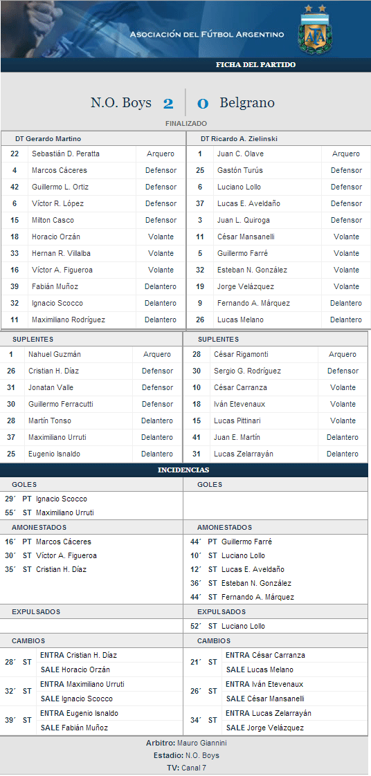 SEGUNDO GOL DE CABEZA EN EL TORNEO: y otra vez Nacho Scocco quien ya le había convertido con la testa a Independiente en la fecha 1. EFECTIVIDAD INTACTA: al cabo de 42 partidos dirigiendo a la lepra el Tata alcanza el 59,52 % por sobre el 57,14 del loco Bielsa con la misma cantidad de partidos dirigidos.