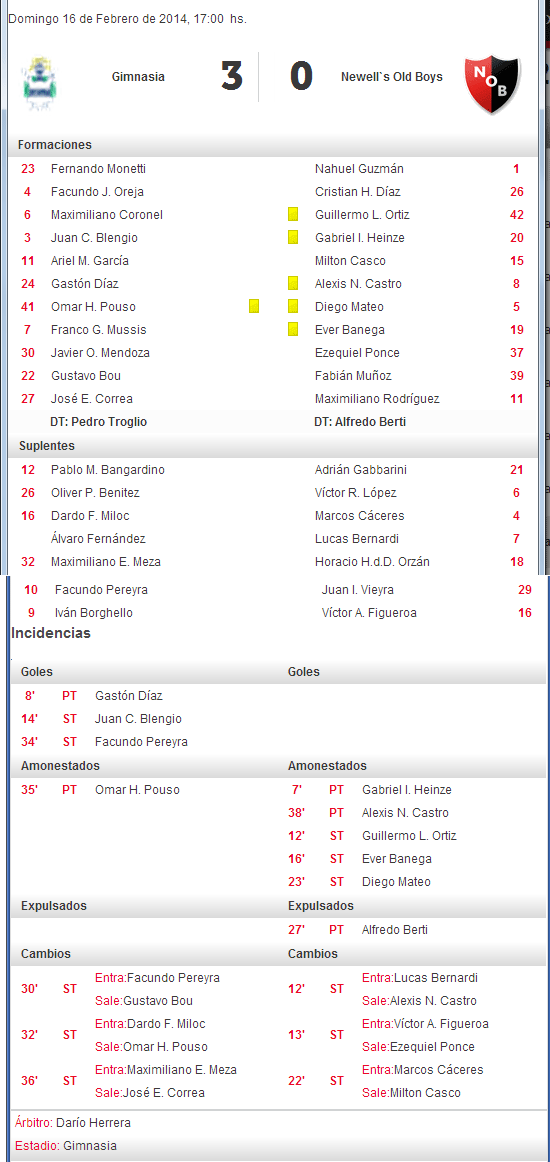 HERRERA Y LA LEPRA: El árbitro dirigió a la lepra en 3 oportunidades, con 2 victorias y esta última derrota. Es la primera vez que expulsa en un partido dirigiendo a la lepra y le tocó a Berti. Ya había cobrado un penal pero a favor de la lepra que Maxi Rodriguez cambió por gol en la fecha 7 del Torneo Inicial 2013 frente a Olimpo.