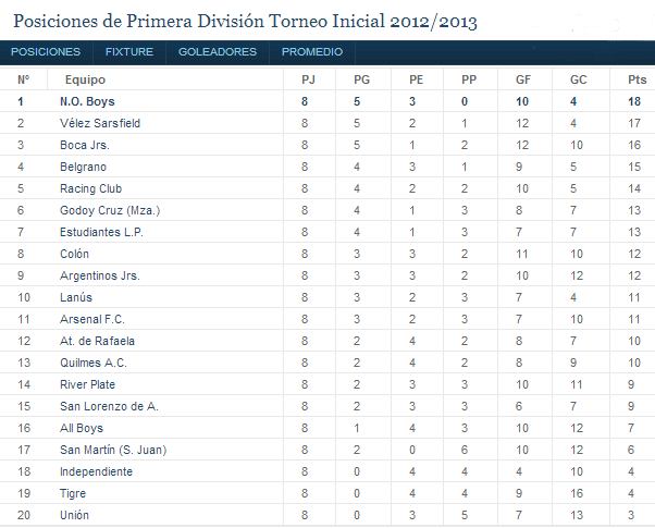 UNICO INVICTO DEL TORNEO: El equipo del Tata es el único en el Torneo Inicial 2012 que aún mantiene el invicto, suma 5 triunfos y 3 empates. Es la segunda vez en la historia de los Torneos Cortos que la lepra llega a 8 partidos iniciales sin perder. La anterior fue en el Torneo Clausura 1992 cuando el equipo del loco Bielsa estuvo 14 fechas sin conocer la derrota.