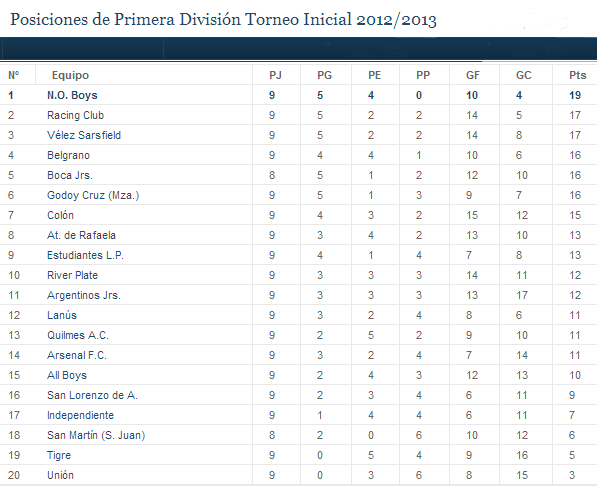 UNICO INVICTO DEL TORNEO: El equipo del Tata es el único en el Torneo Inicial 2012 que aún mantiene el invicto, suma 5 triunfos y 4 empates. Es la segunda vez en la historia de los Torneos Cortos que la lepra llega a 9 partidos iniciales sin perder. La anterior fue en el Torneo Clausura 1992 cuando el equipo del loco Bielsa estuvo 14 fechas sin conocer la derrota.