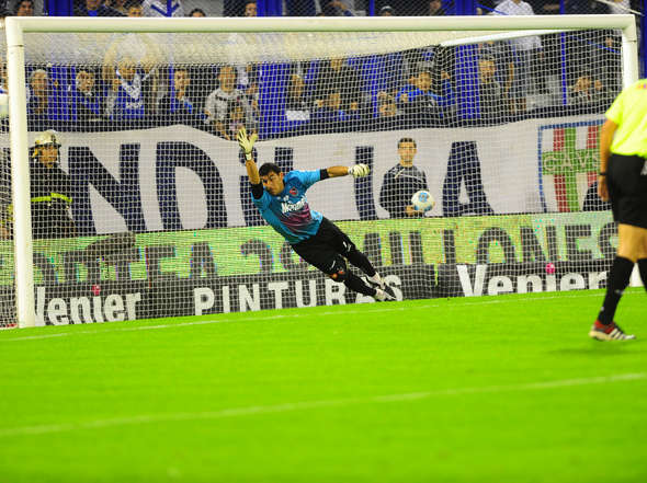PRIMER PENAL EN CONTRA: Una mano dudosa de Casco hace que el árbitro del encuentro pite penal para Velez y Prato lo convierte en el 0-1. Guzmán adivinó el palo pero no pudo hacer nada. Curiosamente el último penal en contra había sido en el anterior 0-3 frente a Lanus por la fecha 2 del Final 2013, Ceballo marca penal y Regueiro lo transforma en gol ante el arquero Peratta.