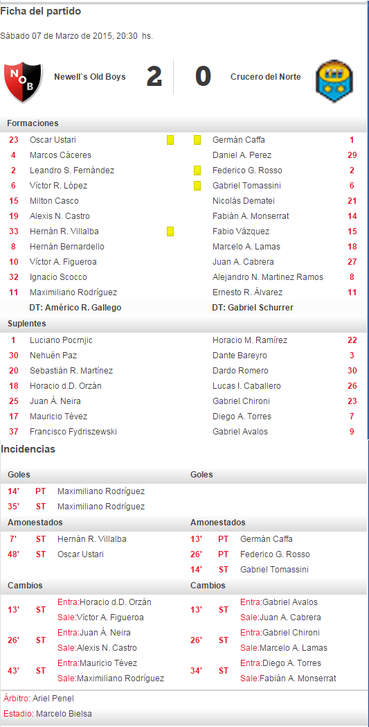 DT: Américo Rubén Gallego - Ficha del partido