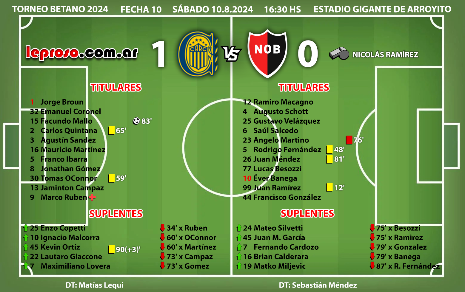 SEBASTIAN MENDEZ : en su quinto partido, encuentra su primer derrota en un clásico rosarino, la segunda consecutiva de su equipo que venía de perder por goleada con Estudiantes de La Plata. Suma 5 puntos de 15, un 33,33 %. |