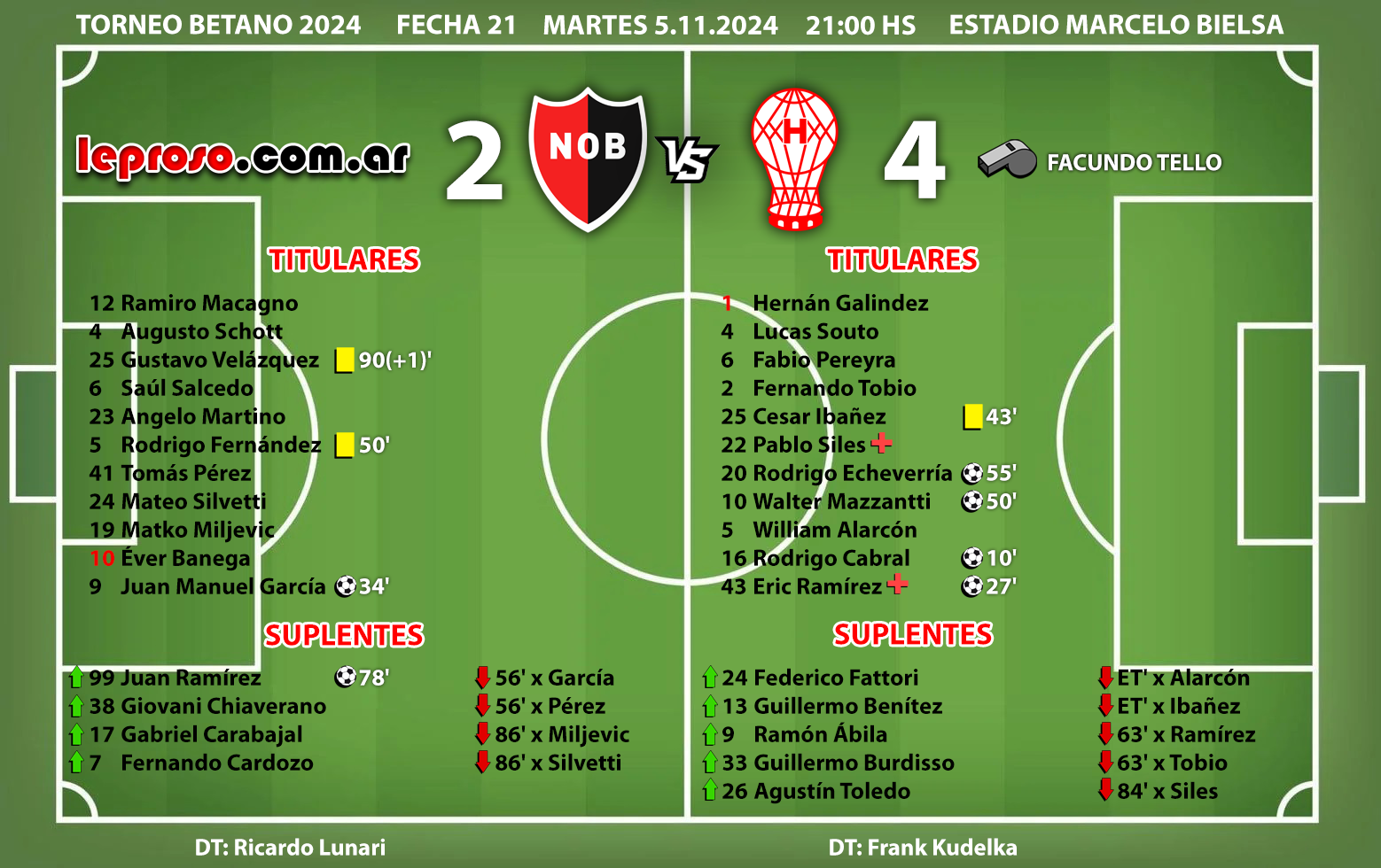 JUAN RAMIREZ : desde el banco de los suplentes, ingresó a los 56' y descontó a los 78'. Es su 3° gol en el presente torneo, el N° 11 con la rojinegra y sigue siendo el máximo goleador leproso actual.