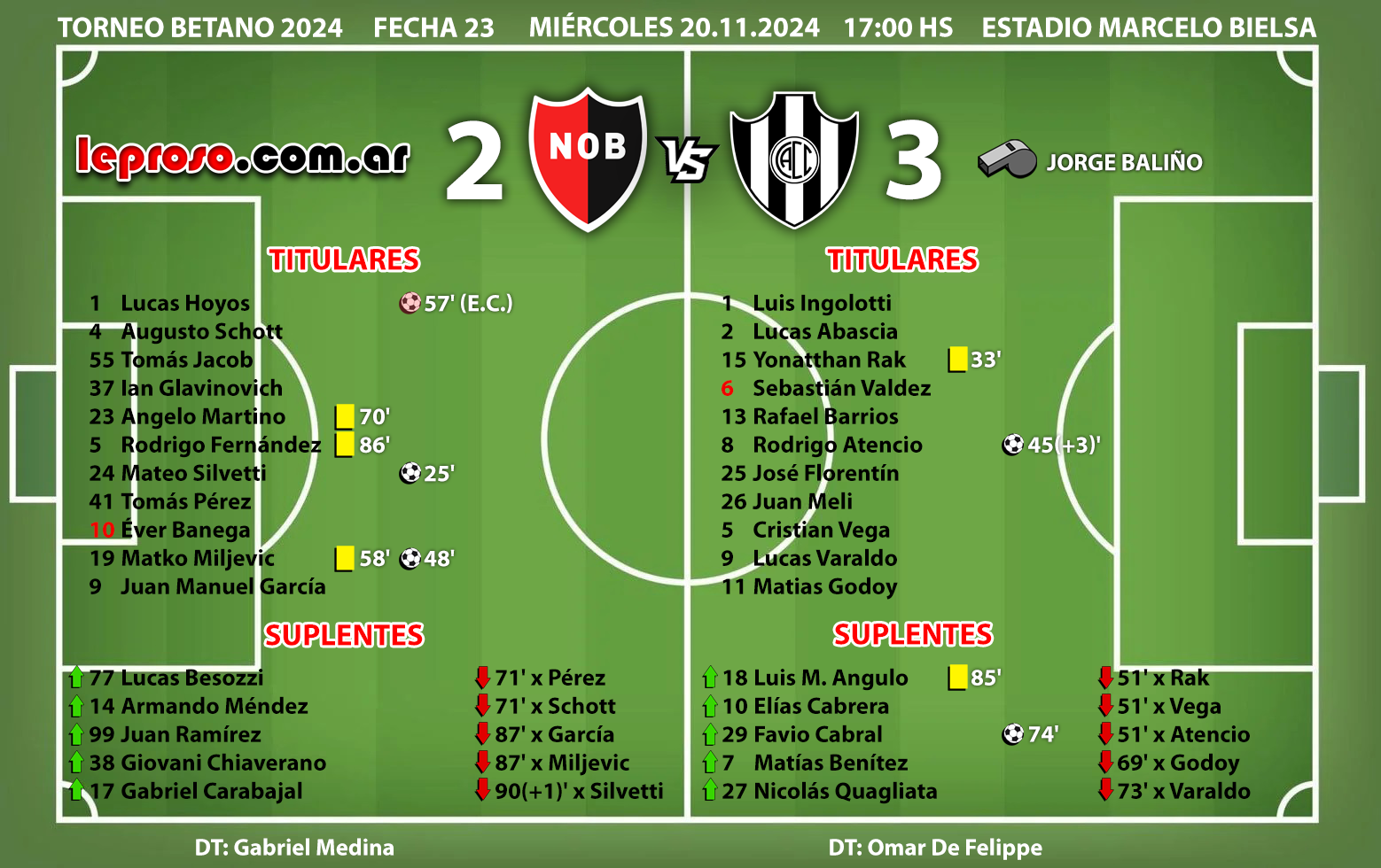 MATKO MILJEVIC: vuelve a poner a Newell's arriba en el marcador 2-1 luego de un pase certero de Ever Banega. De esta manera convierte su 2° gol con la camiseta rojinegra.