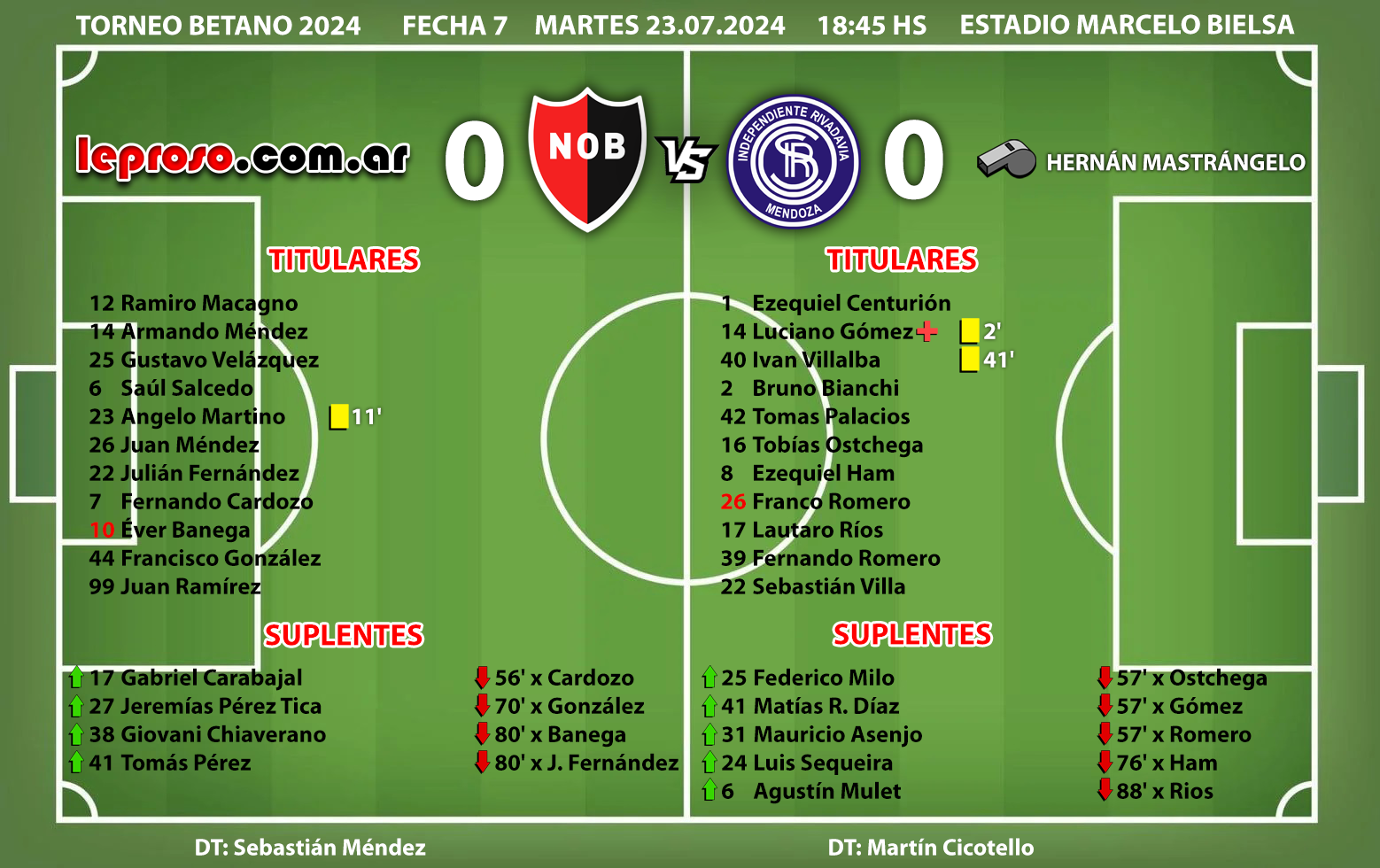 DOBLE DEBUT: debutó desde el inicio el defensor Paraguayo Saul Salcedo con la dorsal N° 6 y en el 2° tiempo ingresó el juvenil Tomas Perez con la dorsal N° 41. |