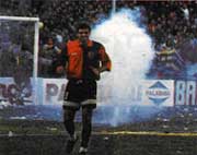 Finalmente, este delantero jugó 26 partidos con la casaca rojinegra y convirtió en total 13 goles.